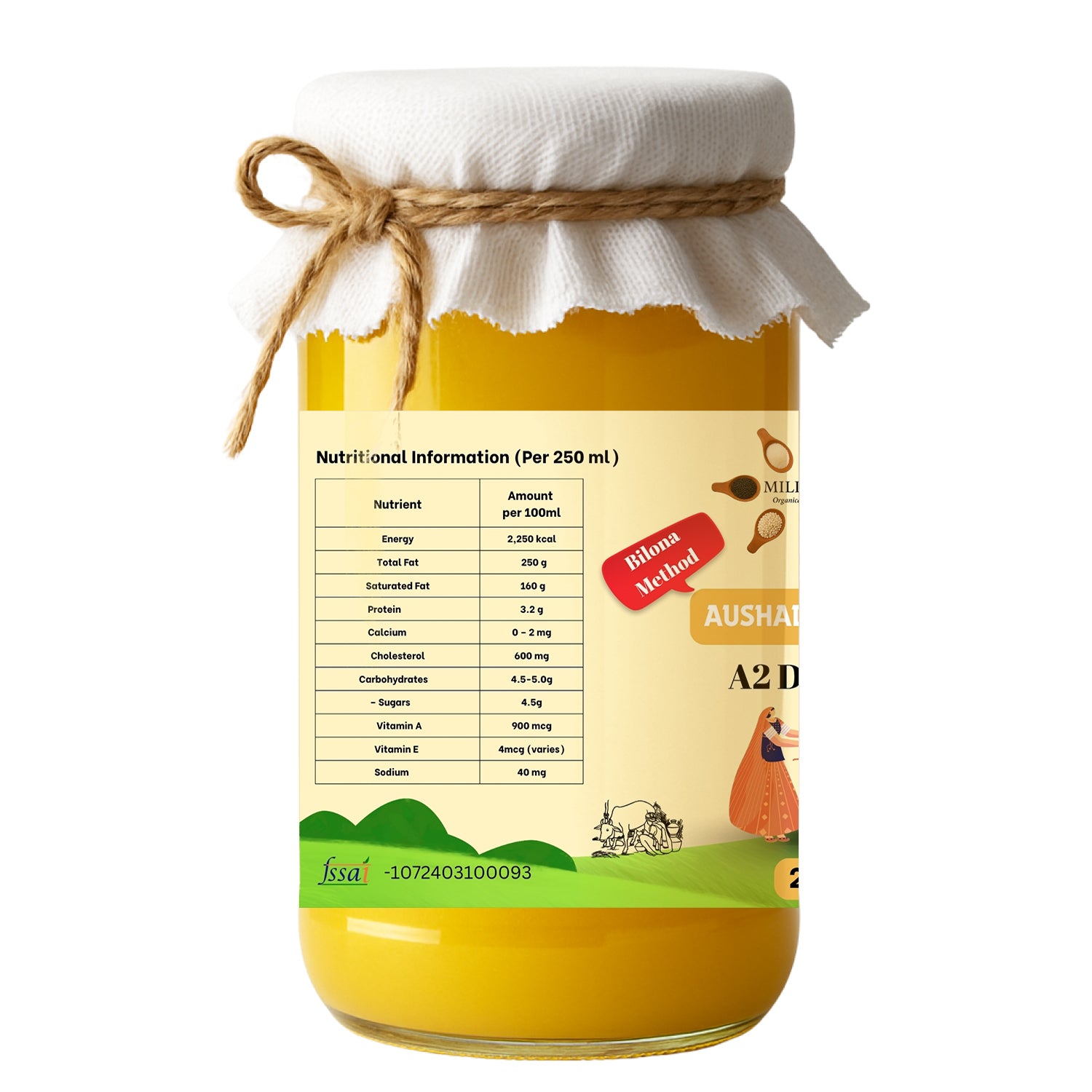 - Pure Desi Gir Cow Milk: Sourced from grass-fed Gir cows