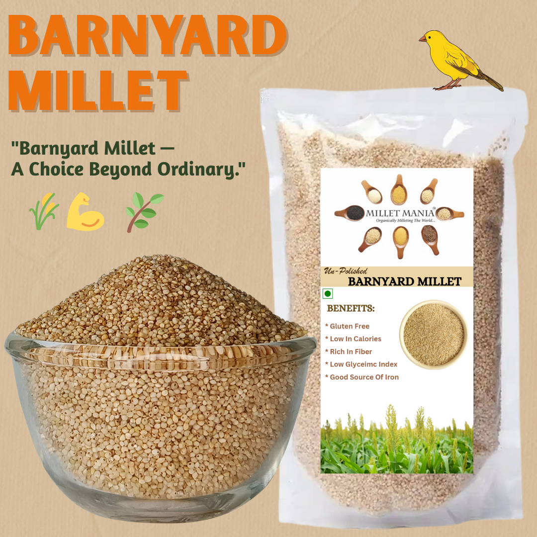 Discover the exceptional health benefits of Unpolished Barnyard Millet—one of the lowest calorie millets perfect for diabetic diets and weight management. This 100% organic, chemical-free millet is naturally gluten-free with a low glycemic index, making it ideal for blood sugar control and healthy digestion.