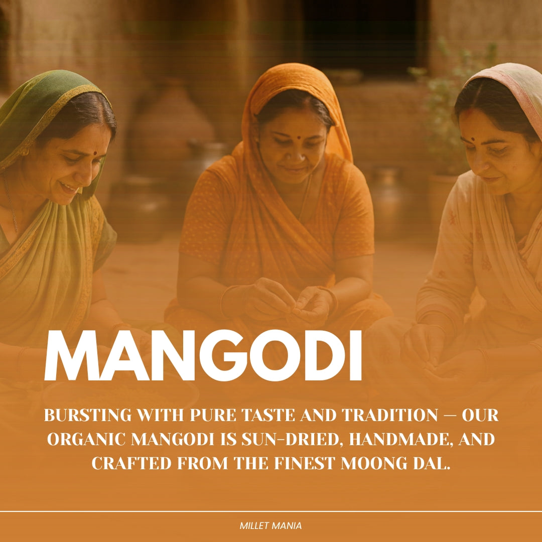 Made from 100% pure Moong Dal, Plain Mangodi is a simple yet nutritious ingredient used in traditional Indian cooking. Sun-dried for perfect texture, it blends naturally into curries, sabzi, kadhi, and wholesome homemade dishes.