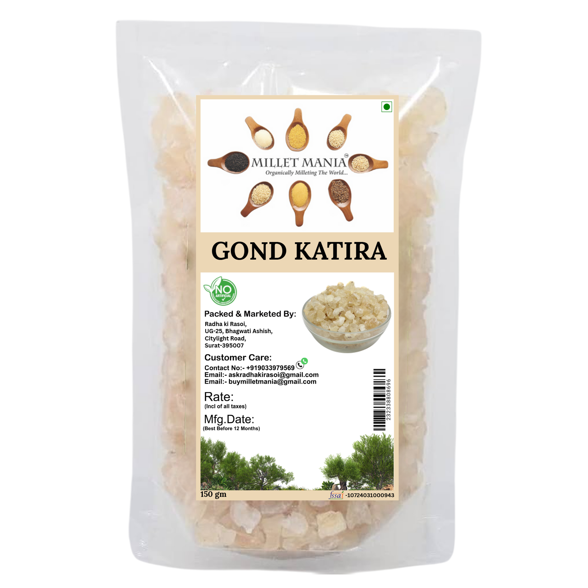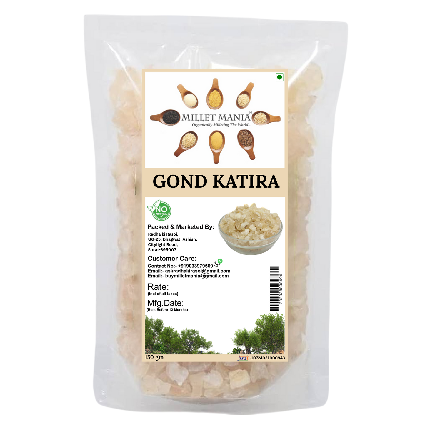 Experience the natural cooling properties of MilletMania Gond Katira (150g) - a rare plant gum known for its exceptional ability to rehydrate and soothe the body. This traditional summer ingredient swells to 10x its size when soaked, creating a refreshing gel packed with soluble fiber.