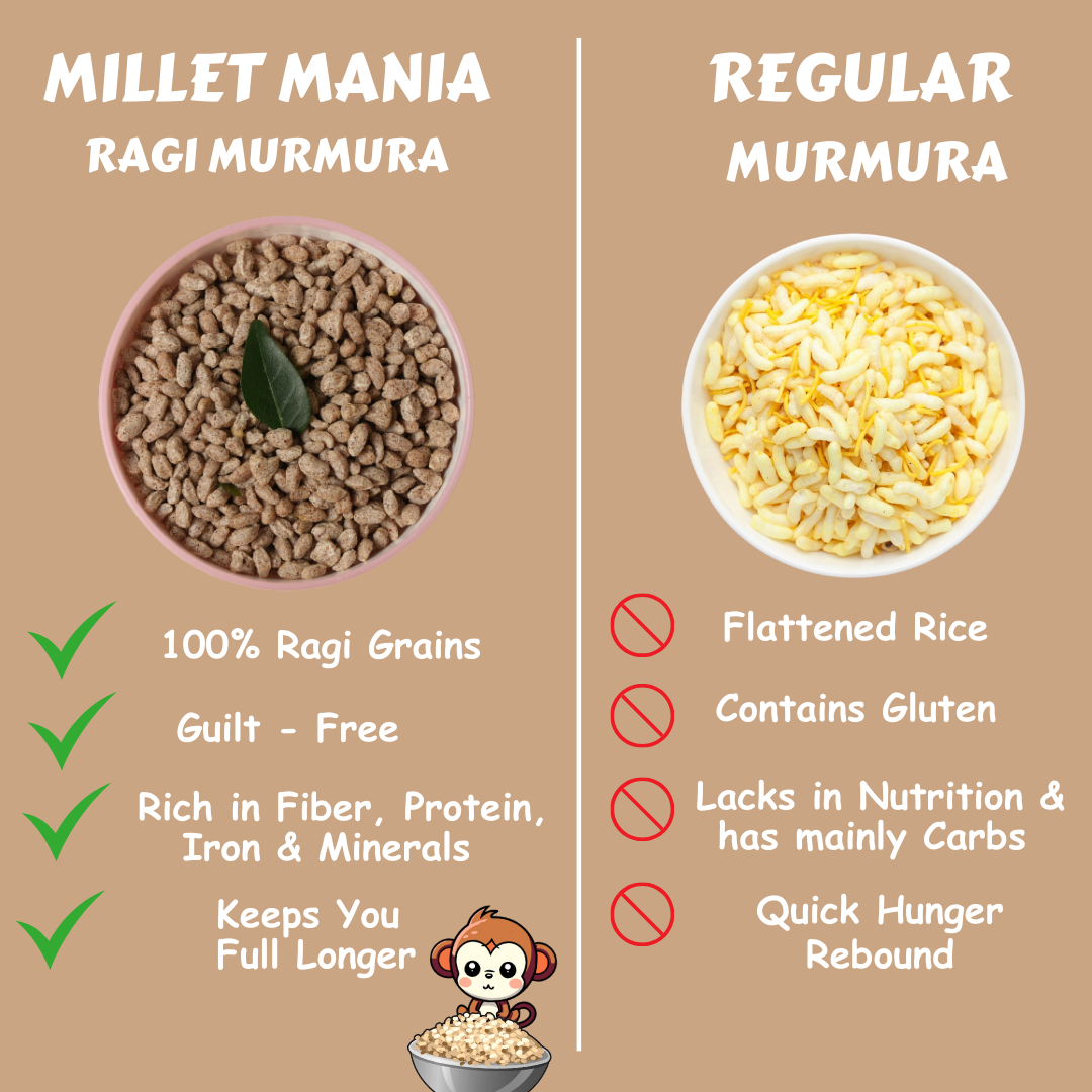 Enjoy Ragi Murmura plain, roasted with spices, or mixed into chaats and snack blends. A perfect companion for guilt-free munching any time of the day!