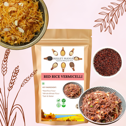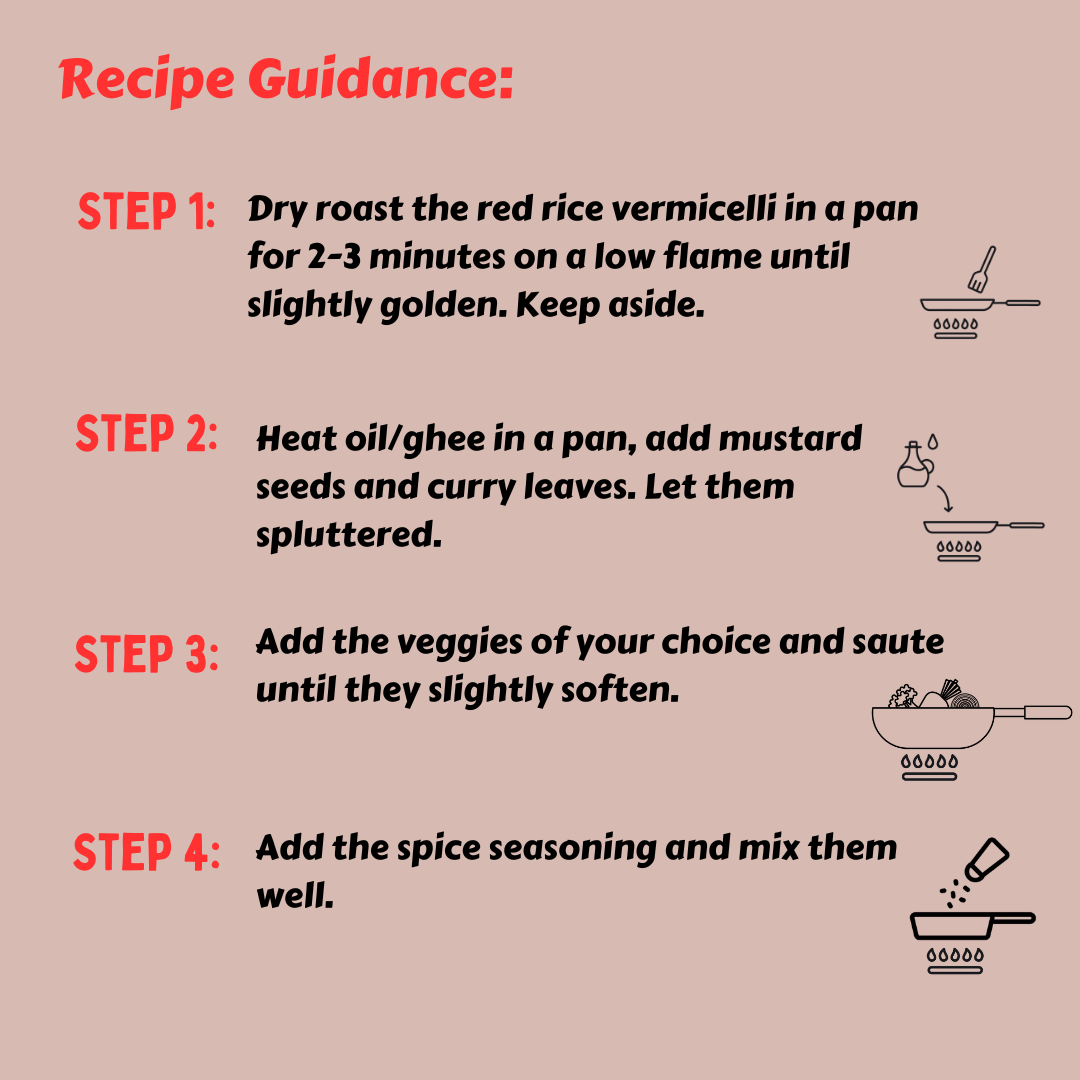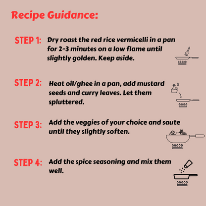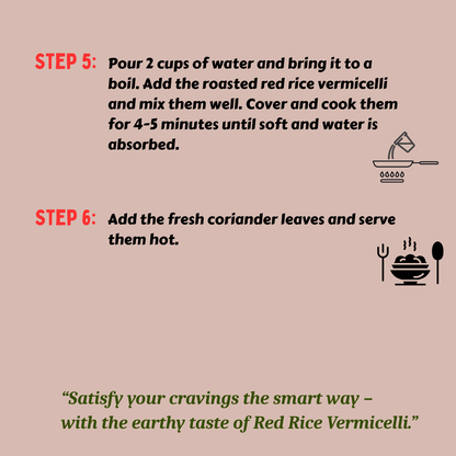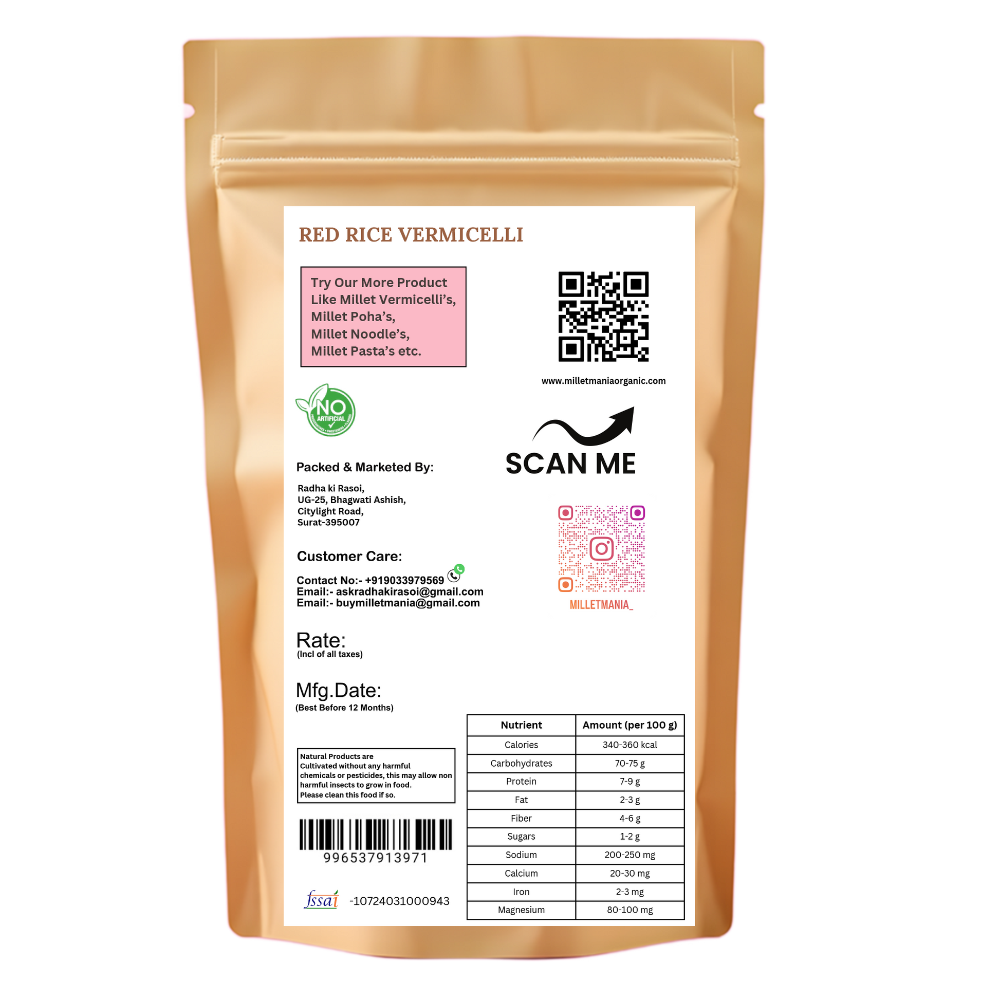 Introducing Red Rice Vermicelli—a wholesome and organic choice for a healthy lifestyle. Made with Red Rice Flour, Whole Wheat Flour, Salt & Water, this vermicelli is rich in essential nutrients, low in fat, and free from harmful chemicals or preservatives.